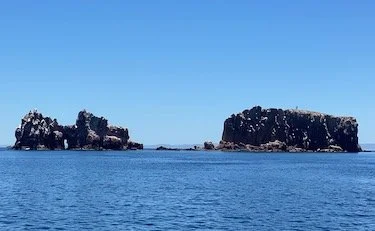 A distant view of Isla Islotes in La Paz, Baja California — home to the famous sea lion colony in the Espiritu Santo National Park.
